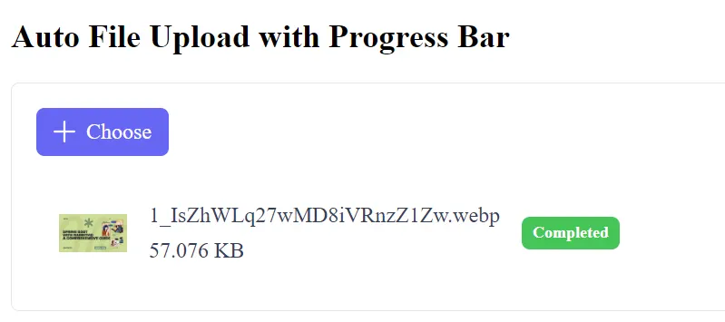 <h2>Auto File Upload with Progress Bar</h2>