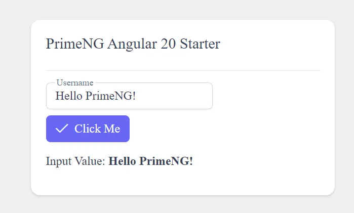 Now you can use PrimeNG components in your standalone components. Let’s add a simple Button and an InputText to your app.ts.