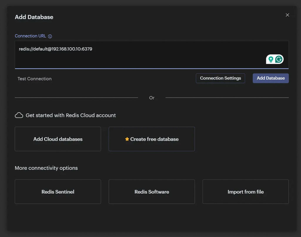 - Add a Redis database using the above details.