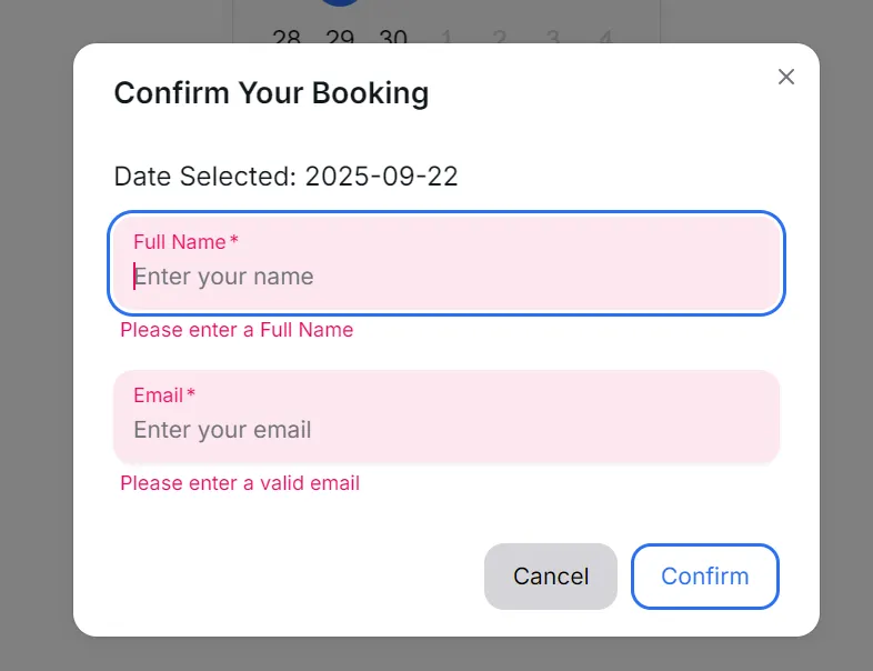 The result is powerful. Users can select a date, confirm details, and feel secure. The interface feels modern, clean, and efficient.